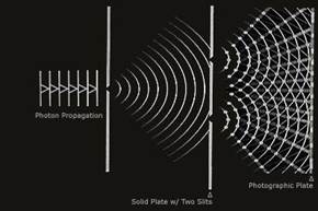 Într-o ordine aparent diferită de idei, fizica cuantică ajunge la o concluzie copleșitoare pentru mintea neantrenată a omului de a considera infinitatea ca adevăr fundamental al existenței fizice. Totuși, natura ne provoacă să ne adaptăm la situație, acceptând ca realitate afirmația că un electron nu are o poziție certă, el nu este undeva, până nu îl măsurăm. Această concluzie a fost trasă în urma experimentului Thomas Young al celor două fante[3], care poate fi închipuit astfel: Un fascicul de electroni a fost trimis către un ecran, cu un paravan între cu două fante (deschizături) foarte înguste (de ordin nanometric), pentru a provoca difracția. Mai jos este o figură ce sugerează cum se comportă unda de lumină când întâlnește fantele.