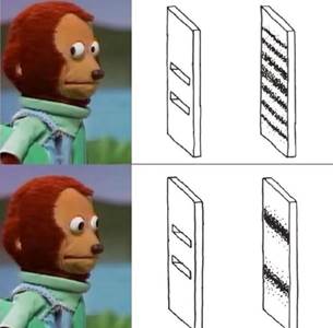 Straniu! Ne-am fi așteptat ca electronii să se comporte ca niște bile ordinare, adică să obținem două dungi pe ecran care să reprezinte electronii care au reușit să treacă prin dreptul fantei respective.